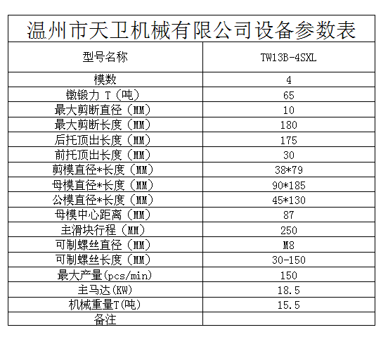 您當前的位置:首頁 / 產(chǎn)品中心 / 四模四沖冷鐓機 / └ TW13B(M8)全自動多工位冷鐓機 / TW13B-4SXL全自動多工位冷鐓機